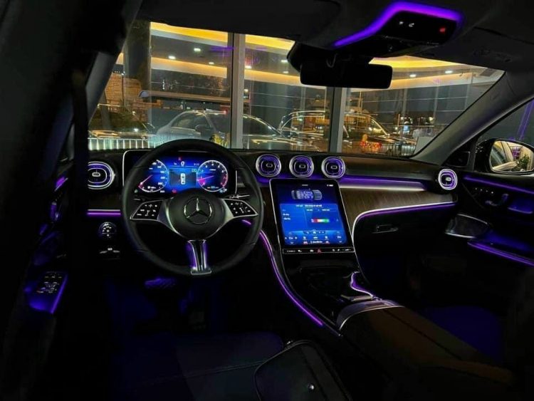 Mercedes-Benz c200 Avantgarde tiếp tục được nhấn mạnh với nội thất ốp gỗ, ghế da cao cấp, hệ thống đèn viền đa sắc màu…